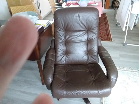 Brun læder hvilestol med polstret ryglæn og armlæn