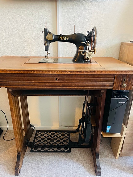 Pfaff Symaskine med træbord og fodpedal