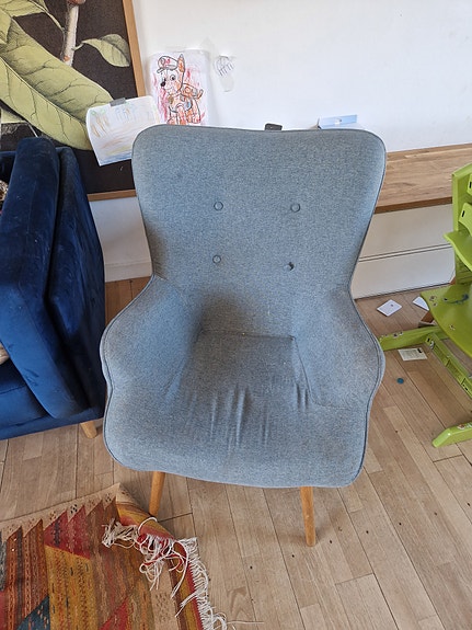 Living & more Lænestol (Coop) - Blågrå øreklapstol m/træben