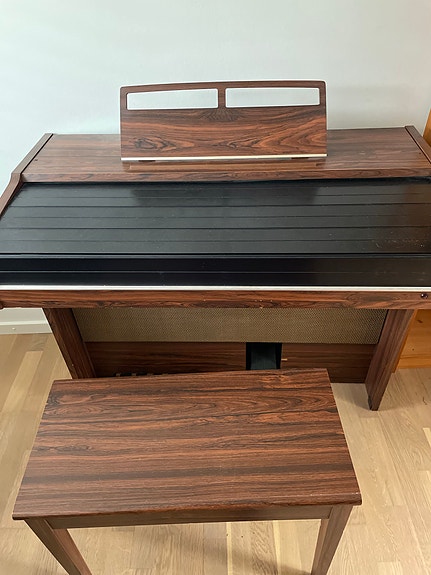 Elektronisk orgel med bænk træfinish
