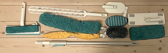 Rengøringssæt med teleskopstang og moppe-/børstehoveder