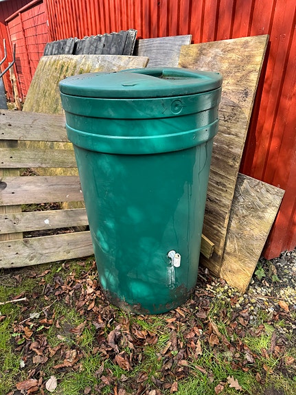 RESERVERET Grøn plast regnvandstønde med låg