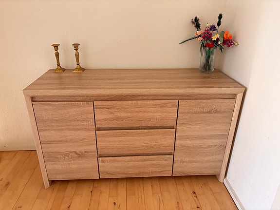 Afsyret fyrretræskommode. Gives væk, nu uden spejl