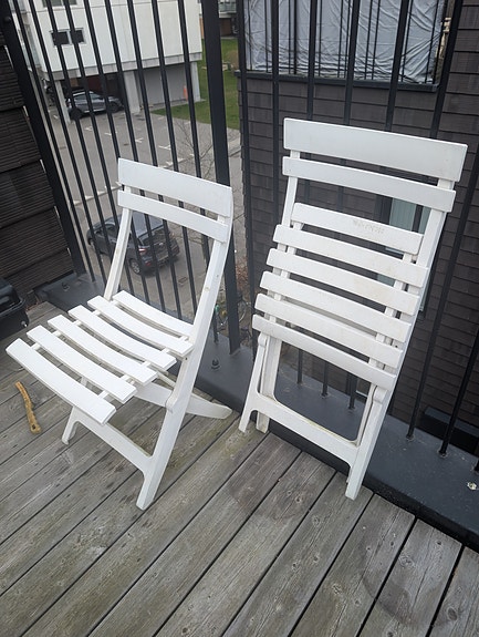 RESERVERET 2 ældre klapstole til have/terrasse – gives væk